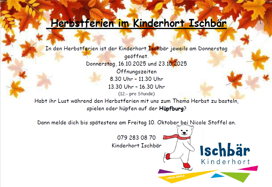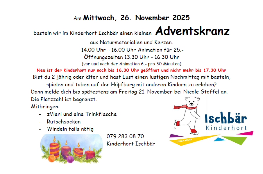 → Musikspielgruppe: Daten für Donnerstag und Freitag ← Kinderhort Ischbär Nachfrage X/TwitterDieses Feld dient zur Validierung und sollte nicht verändert werden.Name(erforderlich) Vorname Nachname Telefon(erforderlich)E-Mail(erforderlich) Anzahl Kinder(erforderlich)Gewünschte Tage für die Betreuung:(erforderlich)